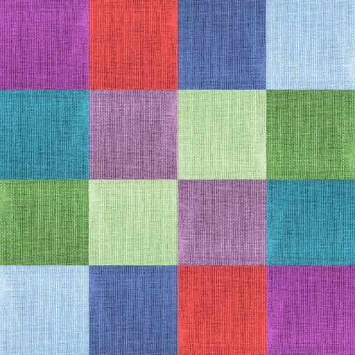 Keywords: fabric textile coarse colorful squares rough canvas geometric shape fiber woven backdrop background material burlap pattern sackcloth textured weave flax natural jute creative purple blue red aqua cubes grid