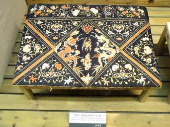 | Keywords: Fabric - Yunnan Nationalities Museum - DSC04144.JPG Yi embroidered horseback cushion Fabric exhibited in the Yunnan Nationalities Museum Kunming Yunnan China I took this photograph 2011-08-13 01 52 00 Daderot Public domain Fabric in the Yunnan Nationalities Museum Yi crafts |