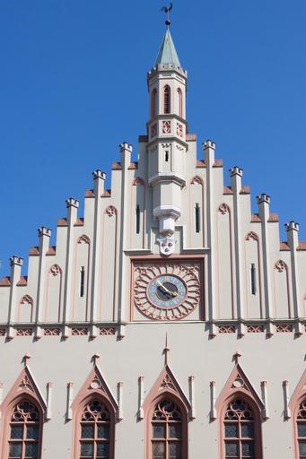 Keywords: facade gothic town hall clock landshut bavaria germany sun building gable summer romantic old town sky blue tourism city breaks historically architecture