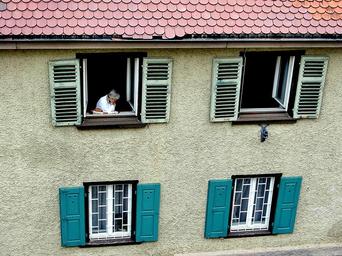Keywords: facade home window shutter bowever roof plate urban architecture woman watch look