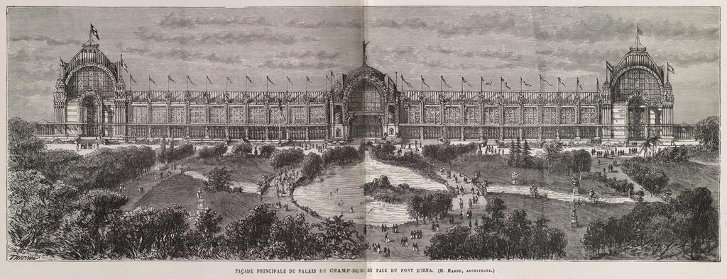 | Keywords: Façade principale du Palais du Champ-de-Mars, en face du pont d'Iéna.jpg View of the Palais du Champ-de-Mars from the Iéna bridge The Palais was facing the Trocadéro and was located on the site where the Eiffel Tower is now standing 1879 engraving 16 8 x 48 4 cm Institution Brown University Library object history exhibition history credit line Simon de Vandière L' Exposition universelle de 1878 illustrée Paris Calmann Lévy 1879 accession number 1254172880386327 PD-old Engravings of buildings in Paris Images of Paris from the Brown University Library Palais du Champ-de-Mars 1878 1879 engravings |