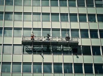 Keywords: facade window window cleaner architecture building houses facades high building work site craftsmen construction workers workers city