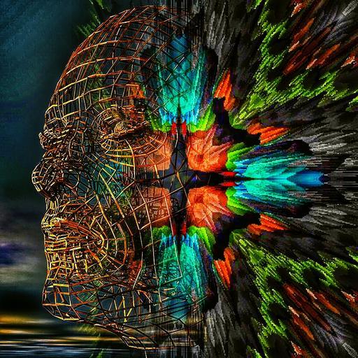 Keywords: face man male wire grid abstract artwork shape head color surreal digital art fantasy digital artwork
