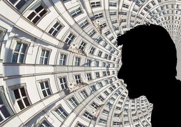 Keywords: face silhouette window insights circular arrangement facade hausfasade old house structure architecture background modern abstract hauswand art