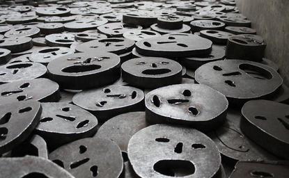 Keywords: faces steel art metal people war human many history projects display dense heavy wall mouth eyes nose gray