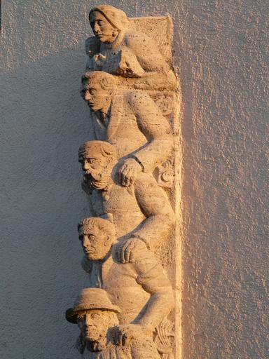 Keywords: faces stone stonemasonry profile men figures facade head heads shadow back light person face portrait piggyback each other one above the other