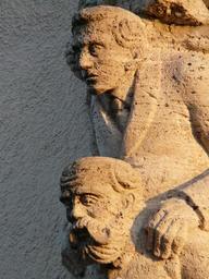Keywords: faces stone stonemasonry profile men figures facade head heads shadow back light person face portrait piggyback each other one above the other