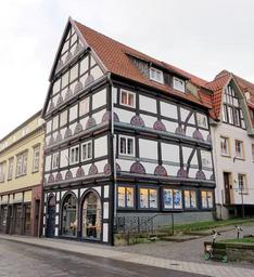 Keywords: fachwerkhaus home truss old town building historically architecture maintained warburg corner house road front front view