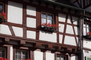 Keywords: fachwerkhaus truss flowers flower box home building wood decor old carving window old town turfed flower museum of local history maintained bar