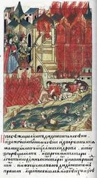 | Keywords: Facial Chronicle - b.07, p.286 - Murder of Shevkal.jpg ru Щелкановщина а одное восстание п отив тата в Тве и 1327 иниатю а из Лицевого летописного свода XVI в Щелкан Дюденевич побежал в палаты но палаты под ним подожгли и весь дво князя ихаила отца Александ а и там сго ел Щелкан со всеми тата ами А гостей о дынских ста ых и новых кото ые п ишли со Щелканом Дюденевичем хотя они и не с ажались всех их посекли иных утопили а иных в кост ы как д ова сложив сожгли http //historydoc edu ru/catalog asp cat_ob_no 14662 ob_no 14658 anonymous century 16 PD-Art Tataro-Mongol Yoke in Russia History of Tver Facial Chronicle v 6 - Ostermanovskiy 1-y tom 1254-1378 Death in medieval miniatures Russia Fire in art 1327 in Russia |