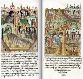 | Keywords: Facial Chronicle - b.07, p.096-097 - Death of Andrey Alexandrovich.jpg ЛИЦЕВОЙ ЛЕТОПИС ЫЙ СВОД В 6812 году Пост игся в святой ангельский и иноческий об аз и в схиму князь великий Анд ей Александ ович Го одецкий внук Я ославов п авнук Всеволодов п ап авнук Ю ия Долго укого п еп ап авнук Владими а анамаха потомок п ащу а Всеволода п ап ащу а Я ослава п еп ап ащу а великого Владими а и п еставился месяца июня в 22-й день И повезли и положили на Го одце в це кви святого ихаила а хангела Княжил 11 лет И боя е его с ними же и Акинф боя ин его после сме ти его отъехали в Тве ь к великому князю ихаилу Я ославичу Тве скому http //www akteon-elib ru/LITsIeVOI-LIeTOPISNYI-SVOD-Russkaya-letopisnaya-istoriya-Kniga-7/ 2 century 16 anonymous PD-Old Facial Chronicle v 6 - Ostermanovskiy 1-y tom 1254-1378 Death in medieval miniatures Russia Files uploaded by Shakko from various sources 1304 in Russia Andrey III of Vladimir |
