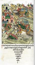 Keywords: Facial Chronicle - b.07, p.142 - Murder of Svyatoclav Mstislavich of Karachev.jpg ЛИЦЕВОЙ ЛЕТОПИС ЫЙ СВОД В том же году князь Василий Б янский ходил с тата ами к Ка ачеву и убил князя Святослава стиславича Ка ачевского http //www akteon-elib ru/LITsIeVOI-LIeTOPISNYI-SVOD-Russkaya-letopisnaya-istoriya-Kniga-7/ 2 century 16 anonymous PD-Old Facial Chronicle v 6 - Ostermanovskiy 1-y tom 1254-1378 Death in medieval miniatures Russia Files uploaded by Shakko from various sources 1310 in Russia Princes of Karachev Vasily Alexandrovich of Bryansk |