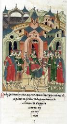 | Keywords: Facial Chronicle - b.07, p.037 - Konstantin Borisovich of Uglich enthroned.jpg ЛИЦЕВОЙ ЛЕТОПИС ЫЙ СВОД И сел после него на княжение в Ростове б ат его князь Константин Бо исович Угличский http //www akteon-elib ru/LITsIeVOI-LIeTOPISNYI-SVOD-Russkaya-letopisnaya-istoriya-Kniga-7/ 2 century 16 anonymous PD-Old Facial Chronicle v 6 - Ostermanovskiy 1-y tom 1254-1378 Files uploaded by Shakko from various sources 1294 in Russia Princes of Uglich Princes of Rostov | ||||