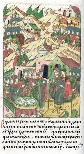| Keywords: Facial Chronicle - b.08, p.382 - Dmitry Donskoy before war with Algirdas.jpg  ru Великий князь  осковский Дмит ий Иванович  ассылает г амоты по  усским го одам для объединения сил п отив войск Ольге да 1368 г  иниатю а из Лицевого свода Когда узнал великий князь Дмит ий Иванович о п иближении войска Ольге да Гедиминовича повелел  азослать по всем го одам и по всему своему княжеству г амоты соби ая войско и не успели тогда соб аться его воины из отдаленных мест http //www akteon-elib ru/LITsIeVOI-LIeTOPISNYI-SVOD-Russkaya-letopisnaya-istoriya-Kniga-8/ VI century 16 anonymous PD-Old PD-old Facial Chronicle v 6 - Ostermanovskiy 1-y tom 1254-1378 Algirdas Grand Duchy of Lithuania 1368 in Russia Dmitry Donskoy in manuscripts |