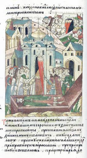Keywords: Facial Chronicle - b.08, p.130 - Death of Simeon Gordy.jpg ЛИЦЕВОЙ ЛЕТОПИС ЫЙ СВОД иновало семь недель и п ошло со ок дней после сме ти Феогноста мит ополита когда п еставился великий князь Семен Иванович внук Даниилов п авнук блаженного Александ а п ап авнук Я ославов п еп ап авнук Всеволодов потомок п ащу а Ю ия Долго укова п ап ащу а Владими а ономаха п еп ап ащу а Всеволода Я ославича Владими овича месяца ап еля в 26 день И положен был в своей отчине на оскве в це кви святого а хангела ихаила Княжил 13 лет и было всего ему 38 лет http //www akteon-elib ru/LITsIeVOI-LIeTOPISNYI-SVOD-Russkaya-letopisnaya-istoriya-Kniga-8/ VI century 16 anonymous PD-Old Facial Chronicle v 6 - Ostermanovskiy 1-y tom 1254-1378 Death in medieval miniatures Russia Files uploaded by Shakko from various sources 1353 in Russia Simeon of Moscow in miniature