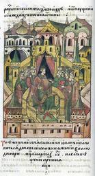 | Keywords: Facial Chronicle - b.08, p.140 - Ivan II enthroned.jpg ЛИЦЕВОЙ ЛЕТОПИС ЫЙ СВОД Той же зимой великий князь Иван Иванович сел на великое княжение во Владими е месяца ма та в 25 день на Благовещение П ечистыя Бого одицы http //www akteon-elib ru/LITsIeVOI-LIeTOPISNYI-SVOD-Russkaya-letopisnaya-istoriya-Kniga-8/ VI century 16 anonymous PD-Old Facial Chronicle v 6 - Ostermanovskiy 1-y tom 1254-1378 Files uploaded by Shakko from various sources 1353 in Russia Ivan II of Russia in miniature | ||||