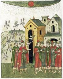 Keywords: Facial Chronicle - b.08, p.439.jpg ЛИЦЕВОЙ ЛЕТОПИС ЫЙ СВОД В том же году было знамение на солнце появились че ные пятна как гвозди опустилась на землю такая тьма что за одну сажень пе ед собою ничего нельзя было увидеть и многие люди сталкивались в темноте и бились д уг об д уга А птицы не могли по воздуху летать так как ничего не видели падали они на землю некото ые даже уда ялись о головы людей http //www akteon-elib ru/LITsIeVOI-LIeTOPISNYI-SVOD-Russkaya-letopisnaya-istoriya-Kniga-8/ VI century 16 anonymous PD-Old Facial Chronicle v 6 - Ostermanovskiy 1-y tom 1254-1378 Files uploaded by Shakko from various sources 1372 in Russia Solar eclipses in art Medieval miniatures of birds