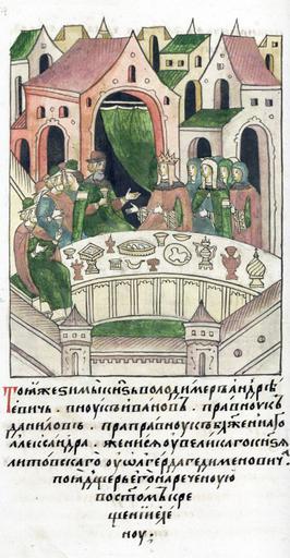 Keywords: Facial Chronicle - b.08, p.454 - Wedding of Vladimir the Bold and Elena Olgerdovna.jpg ЛИЦЕВОЙ ЛЕТОПИС ЫЙ СВОД В ту же зиму князь Владими Анд еевич внук Иванов п авнук Даниилов п ап авнук блаженного Александ а женился взяв в жены у великого князя Литовского Ольге да Гедиминовича дочь названную в святом к ещении Еленою http //www akteon-elib ru/LITsIeVOI-LIeTOPISNYI-SVOD-Russkaya-letopisnaya-istoriya-Kniga-8/ VI century 16 anonymous PD-Old Facial Chronicle v 6 - Ostermanovskiy 1-y tom 1254-1378 Files uploaded by Shakko from various sources 1371 in Russia1372 in Russia Vladimir Andreevich the Bold in miniature Weddings in medieval manuscripts Russia Helen of Lithuania |