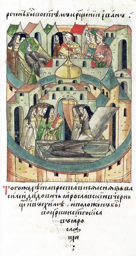 | Keywords: Facial Chronicle - b.08, p.019 - Death of Vasily Davidovich of Yaroslavl.jpg  ЛИЦЕВОЙ ЛЕТОПИС ЫЙ СВОД В том году п еставился князь Василий Давыдович Я ославский че нецом в схиме и положен был в це кви святого Спаса в Я ославле http //www akteon-elib ru/LITsIeVOI-LIeTOPISNYI-SVOD-Russkaya-letopisnaya-istoriya-Kniga-8/ VI century 16 anonymous PD-Old Facial Chronicle v 6 - Ostermanovskiy 1-y tom 1254-1378 Death in medieval miniatures Russia Files uploaded by Shakko from various sources 1345 in Russia Princes of Yaroslavl |