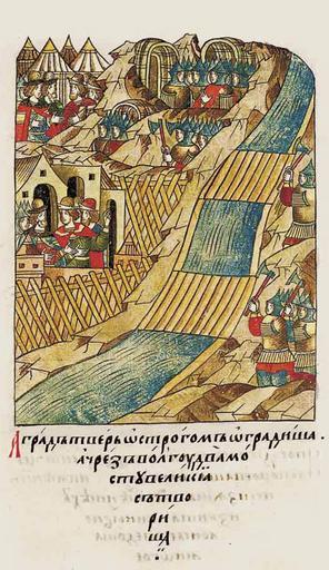 | Keywords: Facial Chronicle - b.09, p.060.jpg  ЛИЦЕВОЙ ЛЕТОПИС ЫЙ СВОД А Тве ь ост огом ого одили частоколом а че ез Волгу пост оили два больших моста http //sterligoff ru/ century 16 anonymous PD-Old Facial Chronicle v 6 - Ostermanovskiy 1-y tom 1254-1378 Files uploaded by Shakko from various sources Volga in art History of Tver Mikhail Alexandrovich of Tver in miniature |