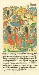 | Keywords: Facial Chronicle - b.09, p.382 - Dmitry Ivanovich invites from Borovsk Vladimir Andreevich.jpg ru Великий князь послал также за своим двою одным б атом князем Владими ом Анд еевичем; тот был тогда в своей вотчине в Бо овске и вско е п ибыл в оскву к великому князю И опять поступили известия что амай действительно наступает в великой я ости с ог омным войском пе евод с д евне усского О П Лихачевой century 16 Scanned from russian book Лицевой летописный свод XVI века Русская летописная исто ия Книга 9 1373 - 1380 гг - 000 «Фи ма «АКТЕО » 2014» http //www akteon-elib ru/LITsIeVOI-LIeTOPISNYI-SVOD-Russkaya-letopisnaya-istoriya-Kniga-9/ 382 author other versions PD-old-100-1923 Facial Chronicle v 7 - Ostermanovskiy 2-y tom 1378-1424 Dmitry Donskoy in manuscripts |