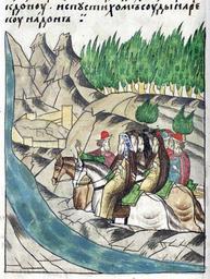 | Keywords: Facial Chronicle - b.10, p.256.jpg ЛИЦЕВОЙ ЛЕТОПИС ЫЙ СВОД Е емий Г ечин епископ Рязанский Исакий епископ Че ниговский Данило епископ Звениго одский и а химанд иты и игумены и иноки Пошли же от Пе еславля Рязанского в неделю Фомину П еп оводили же с нами и т и ст уга да насад на колесах; в четве г же п ишли к еке Дону и спустили суда на еку Дон sterligoff ru century 16 anonymous PD-Old Facial Chronicle v 7 - Ostermanovskiy 2-y tom 1378-1424 Files uploaded by Shakko from various sources 1389 in Russia Pimen Metropolitan of Moscow Don River |