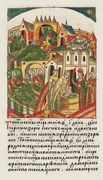 | Keywords: Facial Chronicle - b.10, p.391 - Birth of Konstantin Dmitrievich of Uglich.jpg ЛИЦЕВОЙ ЛЕТОПИС ЫЙ СВОД Той же весной месяца мая в 10 день на вече нюю за ю было затмение месяца на довольно долгое в емя и потом он появился пе ед анней за ей Той же весной мая в 16 день одился у великого князя Дмит ия Ивановича сын Константин и к естили его князь Василий Дмит иевич б ат его ста ший да а ия Васильева жена тысяцкого А сам князь Дмит ий тогда болел http //www akteon-elib ru/LITsIeVOI-LIeTOPISNYI-SVOD-Russkaya-letopisnaya-istoriya-Kniga-10/ 256 century 16 anonymous PD-Old Facial Chronicle v 7 - Ostermanovskiy 2-y tom 1378-1424 Files uploaded by Shakko from various sources 1389 in Russia Konstantin Dmitrievich of Uglich Eudoxia of Moscow in miniature Lunar eclipses in art Vasily I of Moscow in miniature |