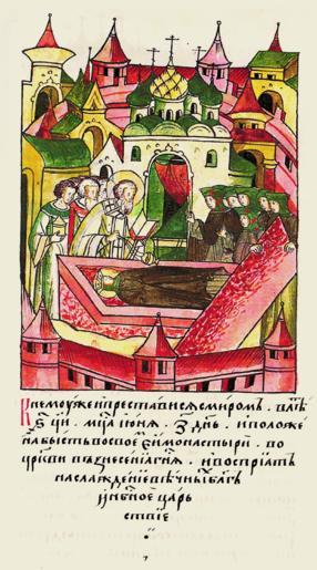 | Keywords: Facial Chronicle - b.12, p.127 - Eudoxia of Moscow's death.gif  К Богу п естави- лась с ми ом в 6908 году месяца июня в 7 день была похо онена в своем монасты е в це кви Вознесения Господня п иняла на- слаждение вечных благ и  ебесного Ца ствия http //www runivers ru/bookreader/book480190/ page/7/mode/1up century 16 anonymous PD-Old Files uploaded by Shakko from various sources Facial Chronicle v 7 - Ostermanovskiy 2-y tom 1378-1424 Death in medieval miniatures Russia Eudoxia of Moscow in miniature 1407 in Russia |