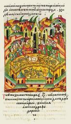 | Keywords: Facial Chronicle - b.12, p.292 - Wedding of Alexandr Fedorovich of Mikulin.gif В ту же зиму месяца янва я в 17 день князь Иван Васильевич Я ос- лавский выдал свою дочь а ию за князя Александ а Феодо о- вича http //www runivers ru/bookreader/book480190/ page/7/mode/1up century 16 anonymous PD-Old Files uploaded by Shakko from various sources Facial Chronicle v 7 - Ostermanovskiy 2-y tom 1378-1424 1412 in Russia Weddings in medieval manuscripts Russia Princes of Yaroslavl Princes of Mikulin |