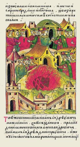 Keywords: Facial Chronicle - b.14, p. 022.gif В ту же весну князь Иван Анд еевич о- жайский внук Иванов п авнук Даниила Александ овича о- сковского взял в плен Анд ея Дмит иевича и сжег его жену в о- жайске в неделю Жен ми оносиц http //www runivers ru/bookreader/book480451/ page/25/mode/1up century 16 anonymous PD-Old Facial Chronicle v 4 - Golytsinskiy tom 1114-1247; 1425-1472 Files uploaded by Shakko from various sources Princes of Mozhaiysk Execution by burning 1446 in Russia |