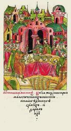 | Keywords: Facial Chronicle - b.14, p. 129.gif О кова стве Шемяки Князь же Дмит ий не- много почтил их с ле- стью на обед к себе позвал и ода ил их http //www runivers ru/bookreader/book480451/ page/25/mode/1up century 16 anonymous PD-Old Facial Chronicle v 4 - Golytsinskiy tom 1114-1247; 1425-1472 Files uploaded by Shakko from various sources 1446 in Russia Ivan III of Russia in miniature Yuriy Vasilyevich of Dmitrov Feudal war in Muscovy 1425-1453 Dmitry Shemyaka | ||||