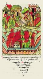 | Keywords: Facial Chronicle - b.14, p. 239 - Birth of Andrey the Younger.gif В том же году одился у ве- ликого князя сын месяца августа в пе вый день и на- зван был Анд еем В 6961 году месяца ап еля в 9 день вы- го ела осква и весь К емль http //www runivers ru/bookreader/book480451/ page/25/mode/1up century 16 anonymous PD-Old Facial Chronicle v 4 - Golytsinskiy tom 1114-1247; 1425-1472 Files uploaded by Shakko from various sources Andrey Vasilyevich the Younger Maria Yaroslavna of Borovsk in miniature 1452 in Russia Fires in Moscow |