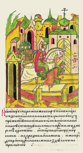 | Keywords: Facial Chronicle - b.14, p. 108.gif А эти убийцы словно сви- епые волки въехали в монасты ь на конях аньше всех икита Константи- нович и по лестнице на конях к пе едним две ям це ковным И тут сошел он с коня и споткнулся о кам- ни кото ые пе ед две ями це ковными лежали на к ыльце http //www runivers ru/bookreader/book480451/ page/25/mode/1up century 16 anonymous PD-Old Facial Chronicle v 4 - Golytsinskiy tom 1114-1247; 1425-1472 Files uploaded by Shakko from various sources 1446 in Russia Vasily II of Moscow in miniature Feudal war in Muscovy 1425-1453 |