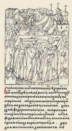 | Keywords: Facial Chronicle - b.19, p. 374 - Vasily III's burials.gif Великую же княгиню несли из ее хо ом в санях на себе дети боя ские на лестницу а с нею шли боя е князь Василий Васи- льевич Шуйский и- хаил Семенович Во- онцов князь ихаил Львович Глинский князь Иван Федо ович Овчина; боя ыни же тогда были с вели- кою княгинею князя Федо а стиславско- го княгиня Анастасия племянница великого князя да князя Ивана Даниловича Пенкова http //www runivers ru/bookreader/book481461/ page/31/mode/1up 16th-century anonymous PD-Old Facial Chronicle v 10 - Tsarstvennaya kniga 1533-1553 Death in medieval miniatures Russia Files uploaded by Shakko from various sources 1533 in Russia Elena Glinskaya Vasily III of Russia in miniature |