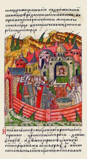 Keywords: Facial Chronicle - b.19, p. 036 - Baptism of Ivan IV.gif самоде жец Василий подвигся со многой адостью шествовать с ним в п еимени- тую обитель великого светильника Се гия чудотво ца живона- чальную Т оицу И туда как некое священное п иношение п инес ца ского своего от ока дав его Богу где и п освещен был святым к ещени- ем сентяб я в 4 день в воск есенье на па- мять святого священ- номученика Вавилы http //www runivers ru/bookreader/book481461/ page/31/mode/1up 16th-century anonymous Facial Chronicle v 8 - Shumilovskiy tom 1425; 1478-1533 Files uploaded by Shakko from various sources Vasily III of Russia in miniature Ivan IV of Russia in manuscripts 1530 in Russia PD-Old |