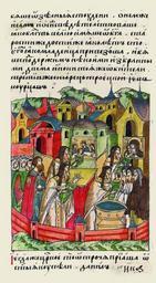 | Keywords: Facial Chronicle - b.19, p. 039 - Baptism of Ivan IV.gif от сильного холода О нем же и сам Иосиф свидетельствовал что он имел благодать от Бога Он достиг уже столетнего воз аста и его как младенца п ивезли и подде жи- вали некие изб анные два инока той же обители Т етий же ста ец т оецкой Иев Ку цов И когда ца ско- го того сына п иняли от святой купели Даниил и Касиан http //www runivers ru/bookreader/book481461/ page/31/mode/1up 16th-century anonymous Facial Chronicle v 8 - Shumilovskiy tom 1425; 1478-1533 Files uploaded by Shakko from various sources Vasily III of Russia in miniature Ivan IV of Russia in manuscripts 1530 in Russia PD-Old |