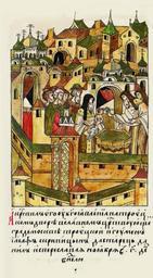 Keywords: Facial Chronicle - b.19, p. 151 - Baptism of Yuri of Uglich.gif А к естил его в це кви Бо- гоявления на Т оицком дво е в славном ца ствую- щем го оде оскве т оицкий игумен Асаф Ск ипицын да ста ец Даниил из Пе еслав- ля в нояб е в 3 день в воск есенье http //www runivers ru/bookreader/book481461/ page/31/mode/1up 16th-century anonymous PD-Old Facial Chronicle v 8 - Shumilovskiy tom 1425; 1478-1533 Files uploaded by Shakko from various sources 1532 in Russia Yuri of Uglich 1532-1563 in miniature Joasaphus Metropolitan of Moscow |