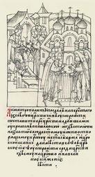 | Keywords: Facial Chronicle - b.20, p. 271 - Coronation Ivan IV.jpg  ru Лицевой летописный свод А послал пе ед этим к ми- т ополиту и велел в це кви так сове шить поста- вить пос еди це кви ук ашенный аналой с паволокою где по- ложить на золотом блюде святой и живот- во ящий к ест и свя- тые ба мы и ца - скую шапку и велел уст оить себе ца ское место пос еди це кви где бы ему на ца ство и великое княжение сесть century 16 http //www runivers ru/bookreader/book481478/ page/282/mode/1up RusPainter other versions PD-old-70-1923 Uploaded with UploadWizard Facial Chronicle v 10 - Tsarstvennaya kniga 1533-1553 Ivan IV's coronation Files uploaded by Shakko from various sources |