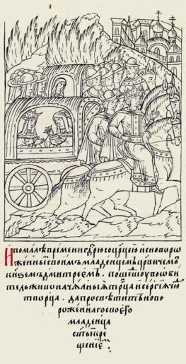 | Keywords: Facial Chronicle - b.21, p. 536.gif иниатю а Лицевого летописного свода XVI в И вско е госу- да ь с ца ицей и ново ожден- ным своим младенцем ца евичем князем Дмит ием пошли в обитель живоначаль- ной Т оицы и Се гия чудотво ца чтобы п осветить ново ож- денного своего мла- денца святым к еще- нием http //www runivers ru/bookreader/book482205/ page/43/mode/1up century 16 anonimus Facial Chronicle v 10 - Tsarstvennaya kniga 1533-1553 PD-Art Anastasia Romanovna 1552 in Russia Dmitriy Ivanovich 1552-1553 |