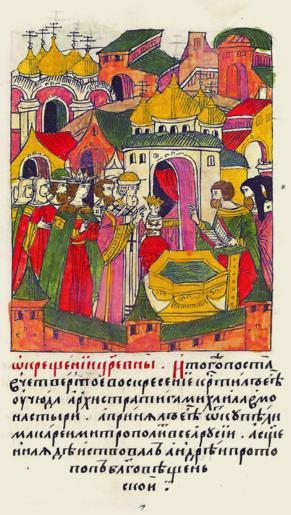 | Keywords: Facial Chronicle - b.22, p. 274 - Baptism of Eudokia Ivanovna.gif  О к ещении ца евны И в тот же Пост в четве тое воск есенье к естил ее в Чудовом монасты е а хист атига  ихаила а п инял ее от купели  ака ий мит ополит всея Руси а священнодействовал Анд ей п отопоп Благовещенский http //www runivers ru/bookreader/book482205/ page/17/mode/1up century 16 anonimus Facial Chronicle v 9 - Sinodalniy tom 1533-1542; 1553-1567 Files uploaded by Shakko from various sources PD-Art 1556 in Russia Anastasia Romanovna Infant baptism in art Evdokia Ivanovna 1556-1558 Athanasius Metropolitan of Moscow |