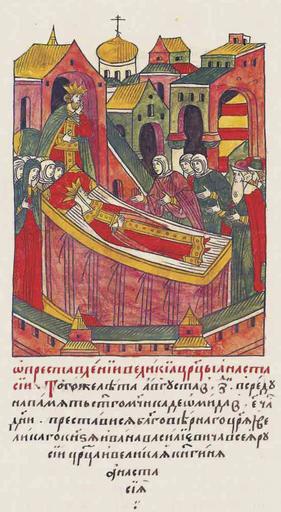 | Keywords: Facial Chronicle - b.23, p. 251 - Death of Anastasia Romanovna.jpg  Лицевой летописный свод О п еставлении великой ца ицы Анастасии В том же году в августе в седьмой день в с еду на память святого мученика Диомида в пятый час дня п еставилась благове ного ца я и великого князя Ивана Васильевича всея Руси ца ица и великая княгиня Анастасия http //www runivers ru/bookreader/book482205/ page/17/mode/1up century 16 anonimus Facial Chronicle v 9 - Sinodalniy tom 1533-1542; 1553-1567 Death in medieval miniatures Russia Files uploaded by Shakko from various sources PD-Art Fires in Moscow Anastasia Romanovna 1560 in Russia |