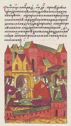 | Keywords: Facial Chronicle - b.23, p. 282 - Death of Guriy of Kazan.jpg Лицевой летописный свод Той же зимой в декаб е в 4 день на память святой великомученицы Ва ва ы и п еподобного отца нашего Иоанна Дамаскина скончался Гу ий а хиепископ Казанский и Свияжский и пог ебен был в Казани в монасты е П еоб ажения Господа нашего Исуса Х иста; этот Гу ий был пе вым а хиепископом в Казани а на а хиепископстве в Казани был http //www runivers ru/bookreader/book482205/ page/17/mode/1up century 16 anonimus Facial Chronicle v 9 - Sinodalniy tom 1533-1542; 1553-1567 Death in medieval miniatures Russia Files uploaded by Shakko from various sources PD-Art 1563 in Russia Guriy of Kazan |