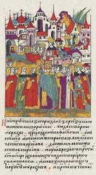 | Keywords: Facial Chronicle - b.23, p. 044.jpg И вст етила за го одом за Ризположенскими во отами чудотво ные об азы ца ица и великая княгиня Анастасия а с нею суп уга князя Ю ия Васильевича княгиня Ульяна а с ними множество боя ынь; и осенив себя к естом у об азов П ечистой Богомате и и великих чудотво цев и любезно п иложившись ко всем иконам и к естам честным http //www runivers ru/bookreader/book482205/ page/17/mode/1up century 16 anonimus Facial Chronicle v 9 - Sinodalniy tom 1533-1542; 1553-1567 Files uploaded by Shakko from various sources PD-Art Anastasia Romanovna Vladimir Andreevich of Staritsa in miniature |