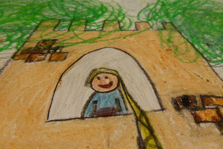 Keywords: fairy tales rapunzel prince tower paint plait hair painting children children drawing drawing artwork kindergarten