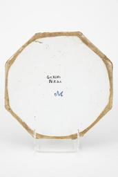 | Keywords: Fajans, karott med lock, baksida, 1700-tal - Hallwylska museet - 90493.tif KAROTT med lock Åttasidig med något utskjutande och otydligt tvärrefflad brädd med inåtgående fals för locket; bottenkanten svagt utsvängd samt refflad; på två motsatta sidor horisontala henklar flackstaviga och bågböjda samt med spikhuvudliknande fästen Dekor I blått på tennglasyr Godset blekt rödbrunt På utsidan på mitten av varje sida en fransk lilja i relief och blått med ett kort horisontalt streck på vardera sida; i varje hörni höjd därmed en bladrosett Ovanför bottenkanten en bård på varannan rutmönster med fyra prickar i varje ruta på varannan en lotusliknande blomma mellan två flikiga blad mot mörk botten Bården avbryts i varje hörn av en lotusblomma mot vit botten Nedanför brädden en bård av rundade bladornament; kantade i blått Hänklarnas utsida med täta oregelbundna prickar färstena blåa Bottnens utsida oglaserad original caption Fajans karott med lock baksida 1700-tal <br/> Nyckelord Signatur Fajans Föremålsbild early other date century 18 size cm 5 2 lock size cm 9 utan lock size cm 12 3 size cm 25 lock size cm 28 HWY place of origin Rouen FR original filename hm_dig7235 11518 inventory number HWY XLVI IV E b 01 90493 CC-BY-SA Erik Lernestål <gallery caption Different images of same object > File Fajans karott med lock 1700-tal - Hallwylska museet - 90492 tif </gallery> Erik Lernestål Signatures Faience Faience in the Hallwyl museum Media contributed by LSH dim-with multiple size templates Media contributed by LSH 2013-10 |