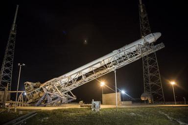 | Keywords: Falcon 9 with CRS-5 Dragon being erected at SLC-40 pad (16513369059).jpg en SpaceX ™s Falcon 9 rocket and Dragon spacecraft launched from Launch Complex 40 at the Cape Canaveral Air Force Station Florida for their fifth official Commercial Resupply CRS mission to the orbiting lab on Saturday January 10 at 4 47am EST Dragon returned to Earth four-and-a-half weeks later with a parachute-assisted splashdown off the coast of southern California Dragon is the only operational spacecraft capable of returning a significant amount of supplies back to Earth including experiments https //www flickr com/photos/spacexphotos/16513369059/ 2015-01-05 https //www flickr com/photos/spacexphotos/ SpaceX Cc-zero-SpaceX Media by SpaceX Falcon 9 Flight 14 Photographs taken on 2015-01-05 Taken with Canon EOS 5D Mark III |