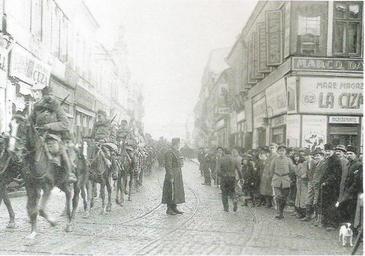 | Keywords: Falkenhayn's cavalry entering Bucuresti on December 6, 1916.jpg en Falkenhayn and his staff of the German 9th Army during the Romanian Campaign World War One 1916 Scanned image unknown german officer 1916 PD-old PD-US PD-EU-no author disclosure World War I forces of Germany in Romania 1916 in Bucharest World War I cavalry |