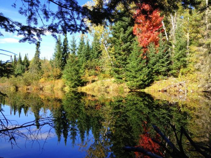 Keywords: fall autumn fall colors fall leaves tree colorful sky water trees branches reflection artistic nature landscape reflections outside conifers scenic shoreline