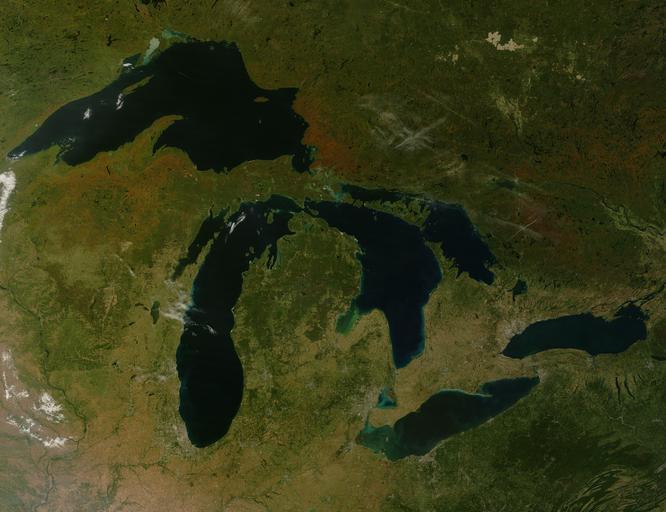 | Keywords: Fall Colors around Lake Superior, Natural Hazards DVIDS714829.jpg en The calendar may have set September 23 as the first day of autumn in 2007 but the forests that line the eastern shore of Lake Superior had already started to mark the turning of the season By September 23 when the Moderate Resolution Imaging Spectroradiometer modis gsfc nasa gov MODIS on NASA's terra nasa gov/ Terra satellite captured this photo-like image the forests of northern Michigan and southern Ontario flamed orange as the first trees of the season -- maples -- began to display their brilliant red and orange fall colors Veins of green run through the sea of orange where the deciduous forest gives way to deep green pine trees 2011-08-02 https //www dvidshub net/image/714829 714829 2012-10-10 17 45 WASHINGTON DC US PD-USGov Lake Superior Images from DoD uploaded by Fæ |