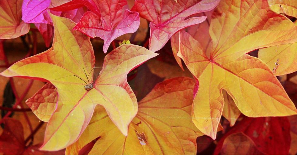 Keywords: fall leaves red leaf season nature foliage colorful botany spider daddy-long-legs seasonal yellow plant macro environment pattern flora natural
